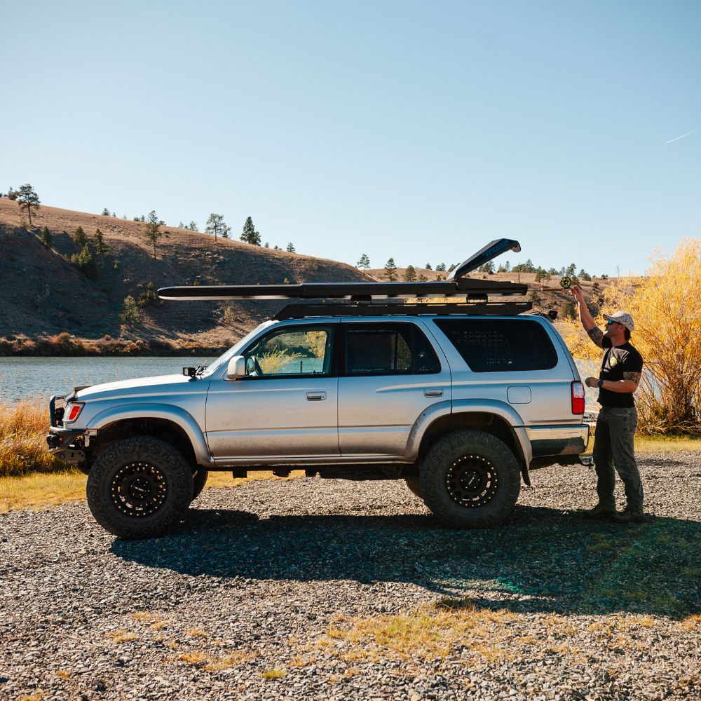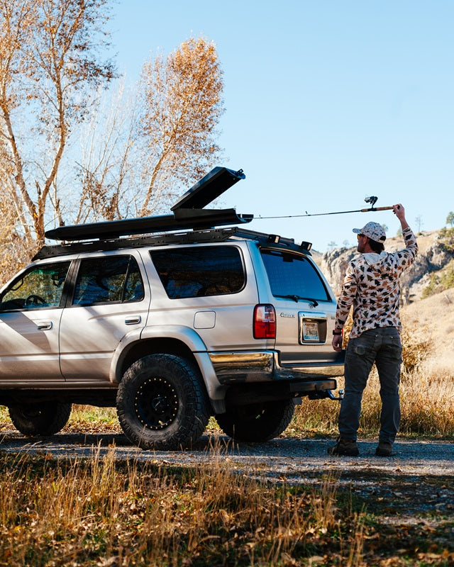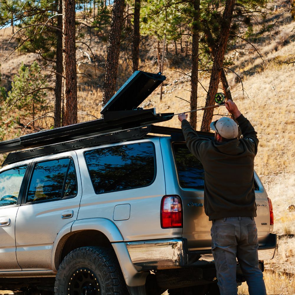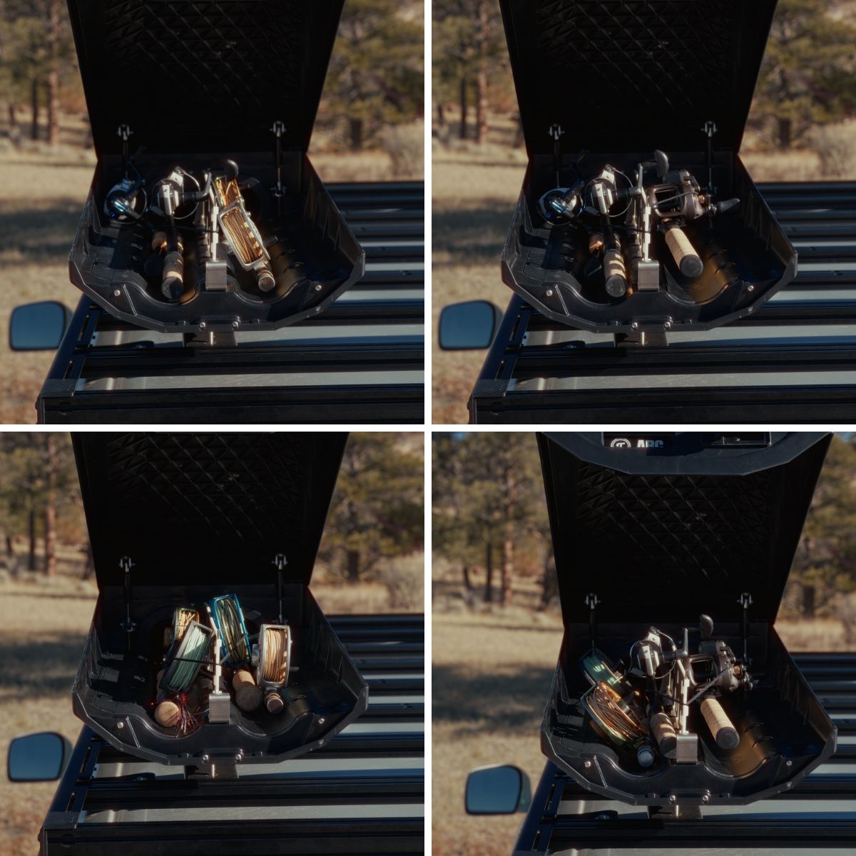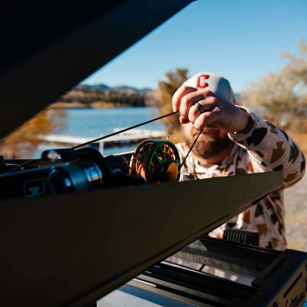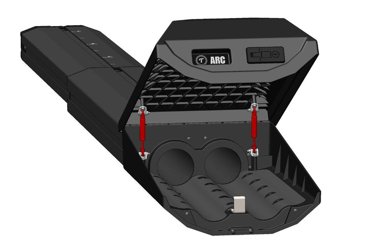 Gas struts deliver a controlled, assisted opening that holds the reel compartment hatch in place—so it stays open while you grab gear, even in wind. Integrated grip points make closing smooth and deliberate. The push-button, lockable latch is built for secure, all-weather operation.